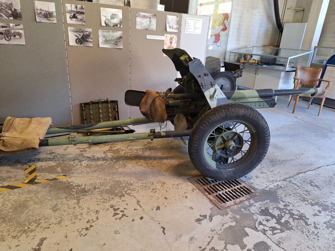 Näyttelyhallissa on myös neuvostoliittolainen sotasaalis, 45mm panssarintorjuntatykki joita saatiin mm Kollaalla 6/JR 34:n komentajan Marokon Kauhun ns tavaranhankintamatkoilla.